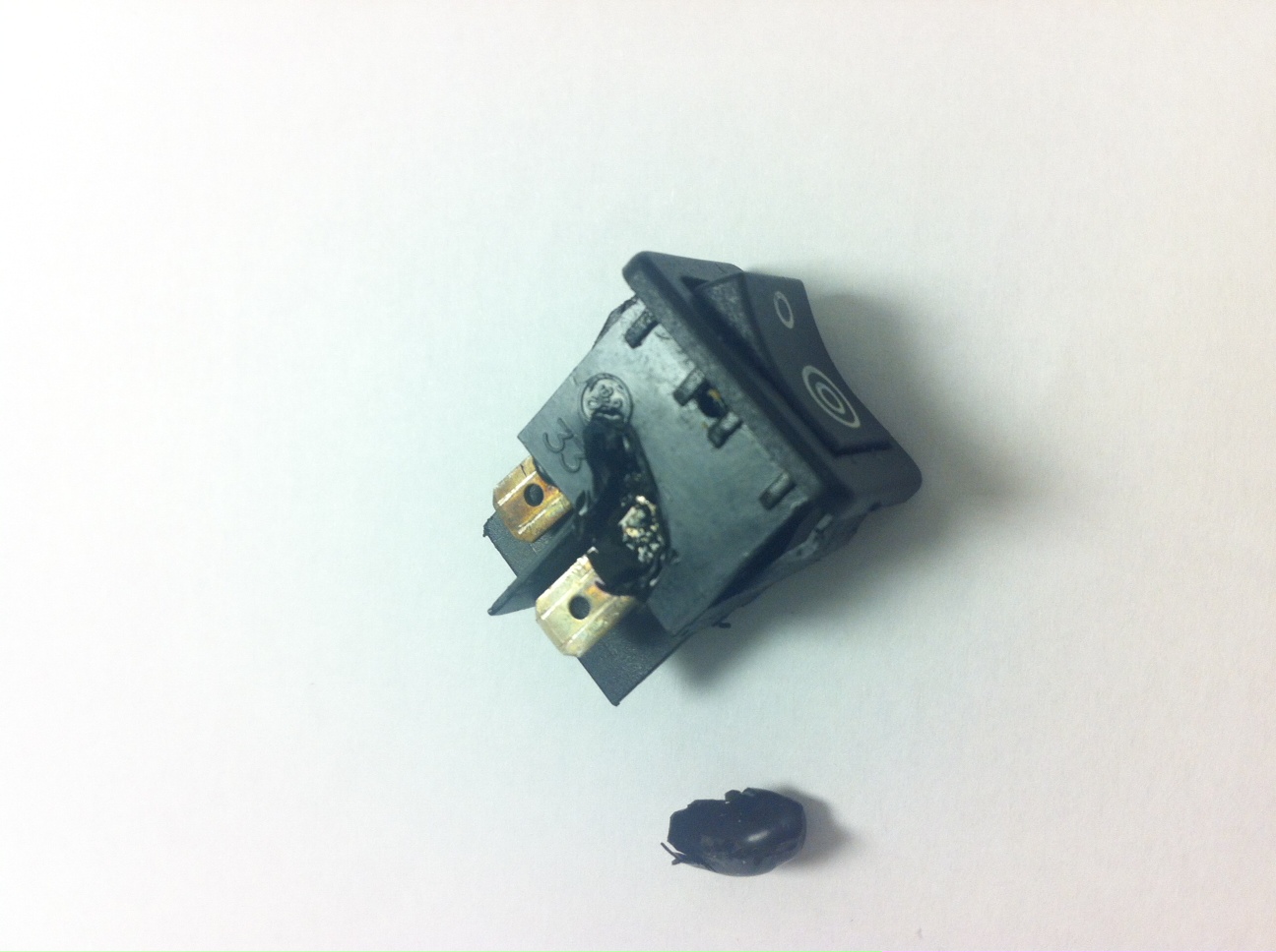 Consumer reports that the electric range's switch on the control panel that switches between large and small burners became frozen/inoperable. Consumer noticed an electric burning smell. The switch had overheated and melted the interior components and exterior housing.