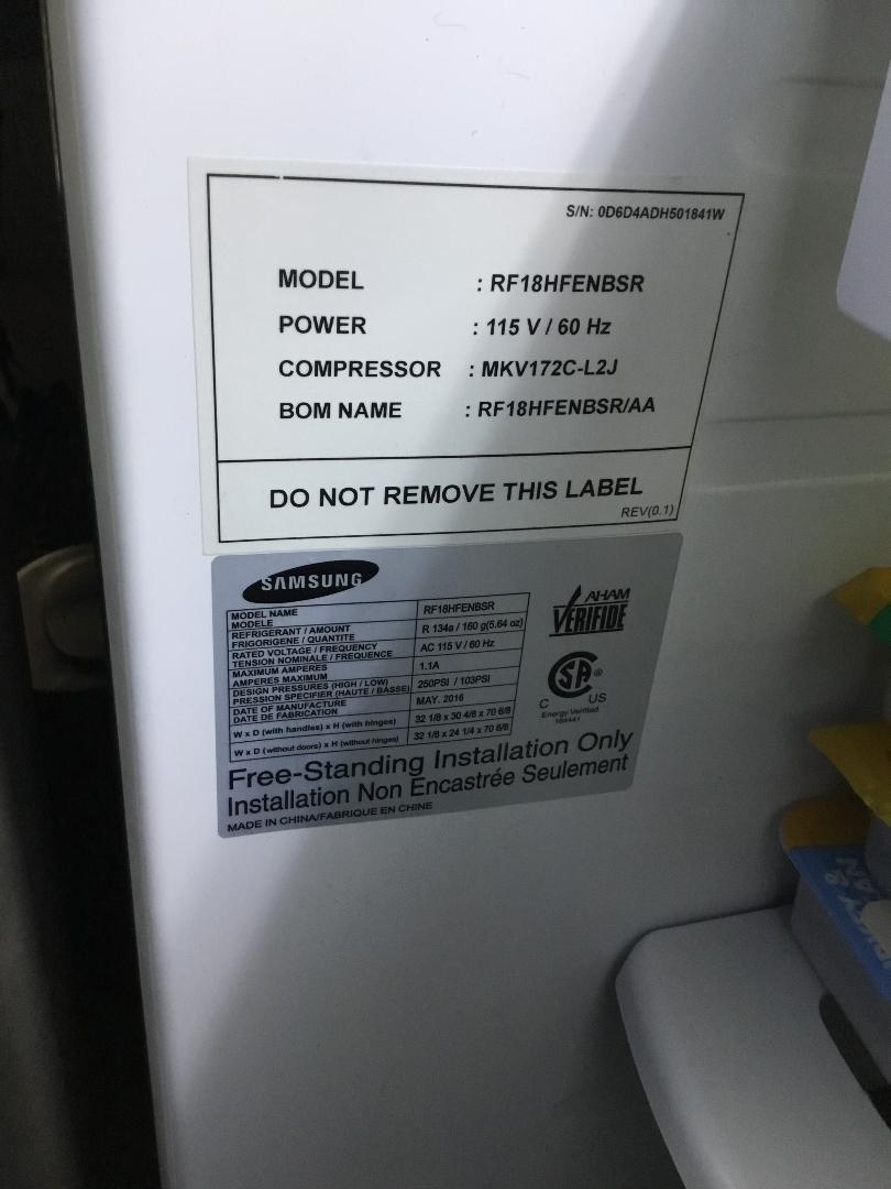 - Incident Description: UNSAFE REFRIGERATOR TEMPERATURE - SAMSUNG 18 CUBIC FT. COUNTER DEPTH FRENCH DOOR REFRIGERATOR