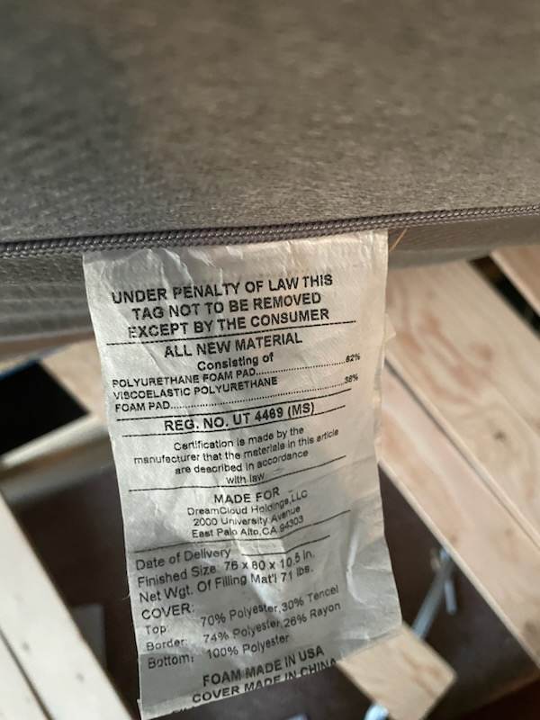 The Consumer, 33, reports that their mattress (queen size) carries "machine washable" tag even though it contains glass fibers. The Consumer stated that the mattress leaked glass fibers all over their house and contaminated everything. The Consumer reported injury to self.