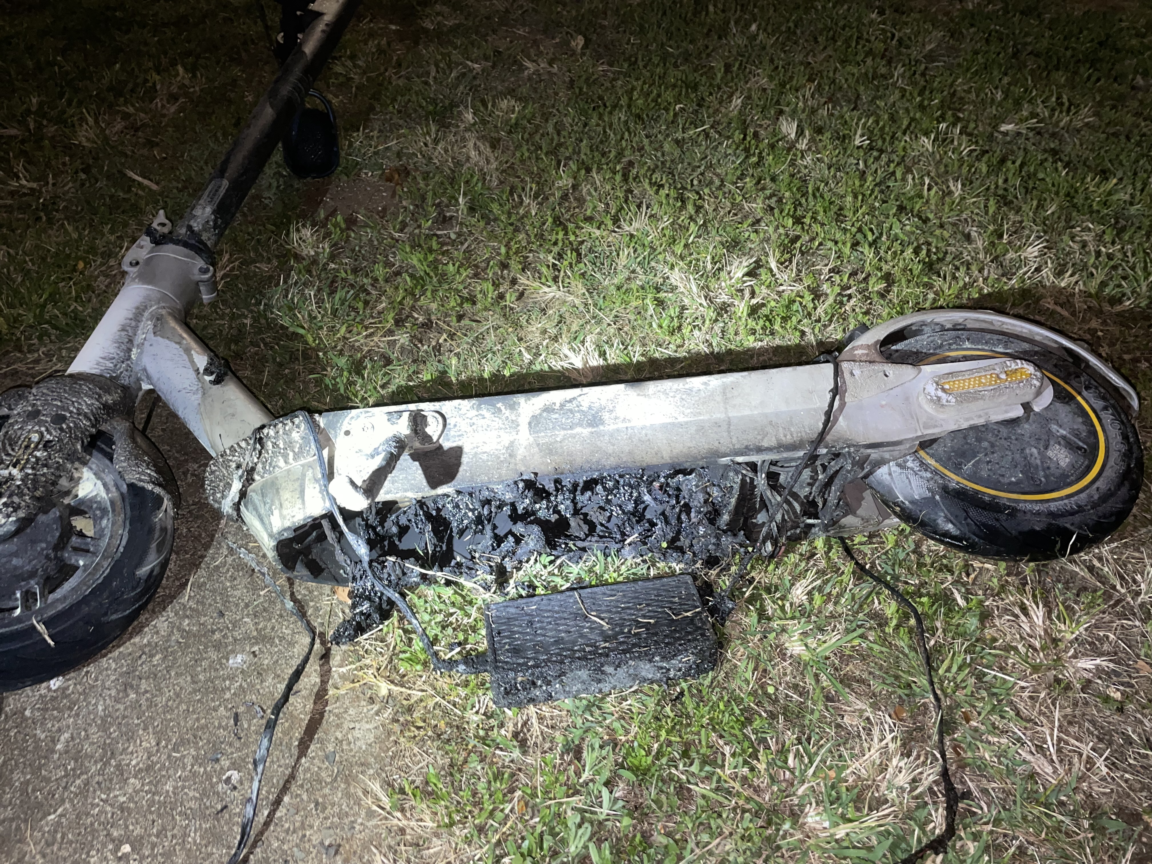 The Submitter reports that the e-scooter that was charging in a residential structure caught on fire.