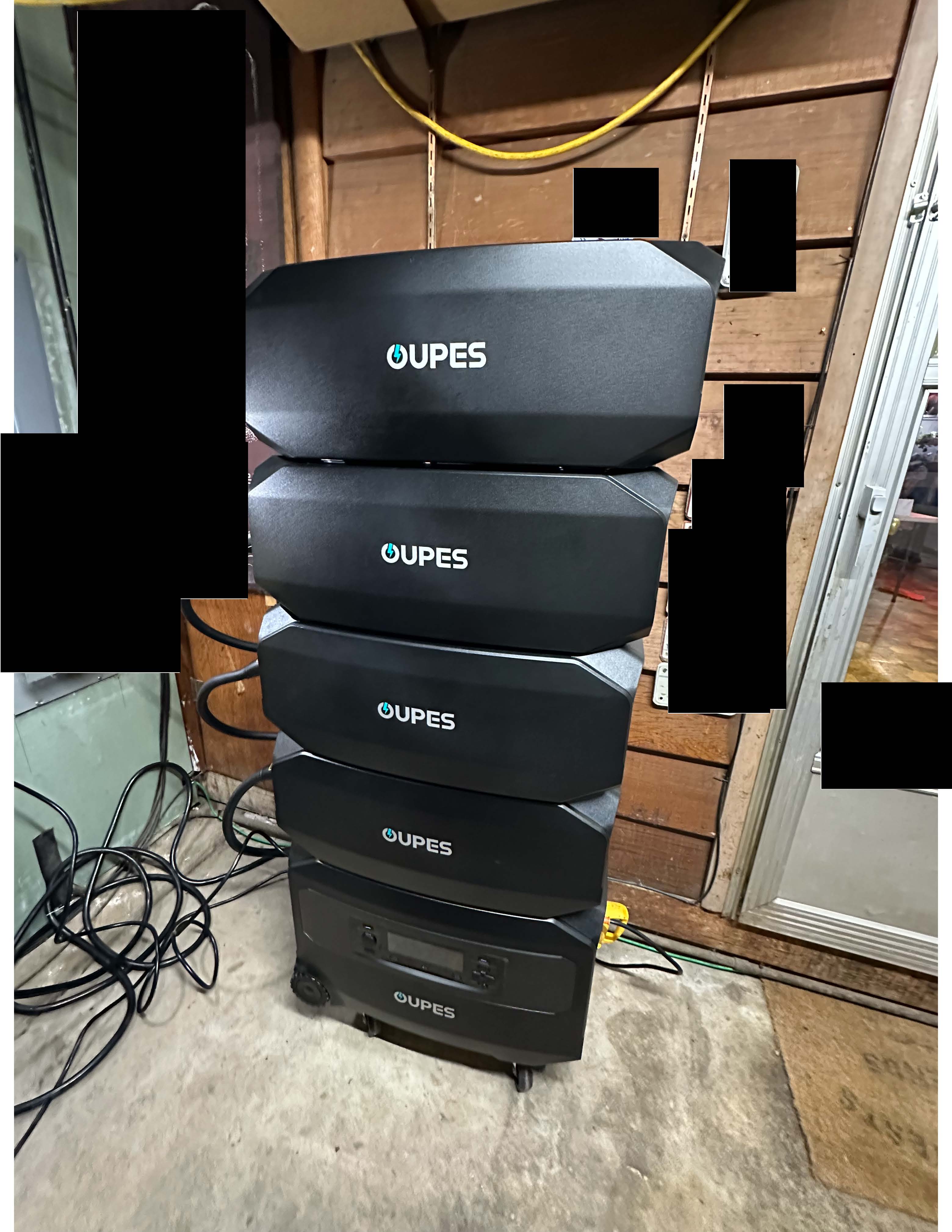 Solar Generator with 4 extra batteries caught fire under normal usage at consumer's home. Consumer woke up & was able to wheel the almost 500lb of device into their driveway while it was on fire & then used a powder fire extinguisher & called the Fire Department. No Injuries.